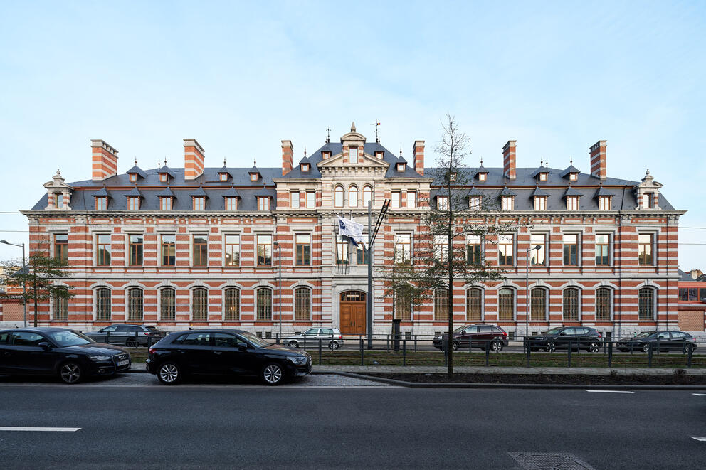 Après un peu plus de deux ans, les travaux de l'impressionnant bâtiment principal de l'ancienne caserne Fritz Toussaint sont terminés. Six bâtiments situés en face de l'avenue Général Jacques ont été transformés en un centre académique géré conjointement par l'ULB et la VUB.