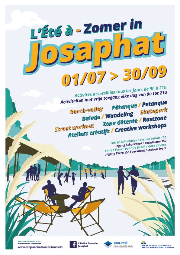 Gilles Delforge, le directeur de la SAU, précise que « Cette année, suite notamment aux suggestions recueillies l’an dernier, « L’Été à Josaphat » proposera deux entrées : celle située à hauteur du 152 avenue Latinis, à Schaerbeek, comme l’an dernier ; et une nouvelle entrée, rue Auguste De Boeck, près de la gare d’Evere. Ce qui facilitera la promenade des riverains sur le site. La surface du parc temporaire passera de 25.000 à 32.000 m2. Cette année encore, la SAU va équiper le parc en procédant à des aménagements minima : accès direct par Evere via une rampe pour piétons et vélos ; chemin de promenade traversante d’une entrée à l’autre ; différentes installations temporaires servant à des activités sportives ou de détente ; aire de pique-nique ; zone pour bar et foodtrucks… Les aménagements et la programmation ont été conçus en concertation avec les communes et différents acteurs régionaux, dont Bruxelles Environnement. Nous avons désigné un prestataire spécialisé dans les événements durables, Yellow Events, qui sera chargé d’assurer l’animation et la gestion au quotifien du site, ainsi que de veiller à la propreté et à la sécurité. Cette fois encore, « L’Été à Josaphat » sera différent des occupations temporaires mises en œuvre par la SAU sur d’autres sites (See U sur le site Usquare.brussels, MolenWest à la Gare de l’Ouest…). Mais le fil rouge demeure le même : faire contribuer le foncier de la Région et de la SAU au développement de la cohésion sociale dans le quartier où il est situé. »