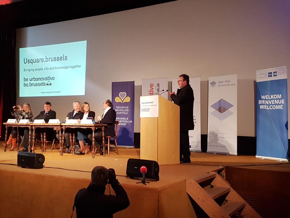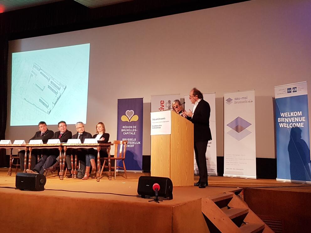 Cette présentation de Usquare.brussels s’est déroulée en présence de l’échevine ixelloise Caroline Désir ainsi que des ministres fédéraux Jan Jambon et Didier Reynders, car la Région bruxelloise rachète l’ancienne caserne à l’État avec le soutien de Beliris.
