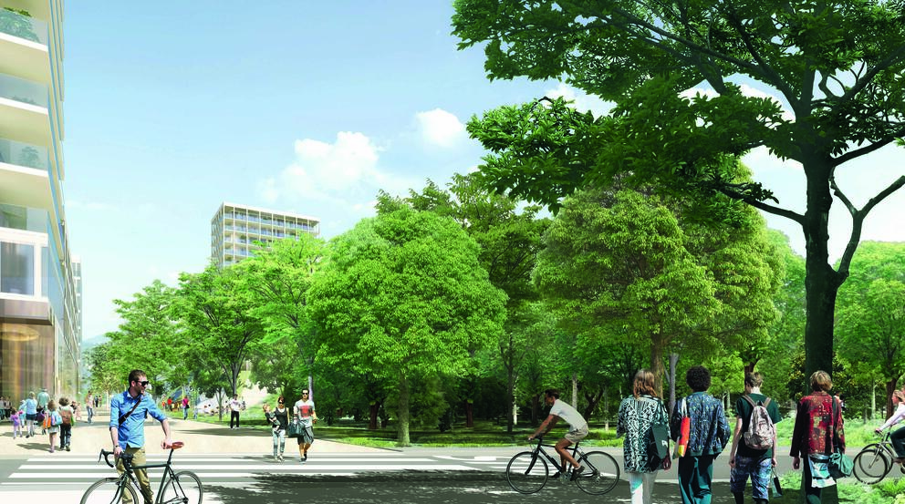 - Désenclaver le site pour en faire un quartier habité – L’ouverture du site permettra le développement d’une offre diversifiée en logements et la création d’espaces dédiés aux équipements et aux commerces de proximité. Le plan suggère en outre d’améliorer l’accessibilité du site par les transports publics en rendant possible l’aménagement d’une nouvelle ligne de tram. Il projette enfin de mettre en place des cheminements de mobilité active et de valoriser les parkings vélos.