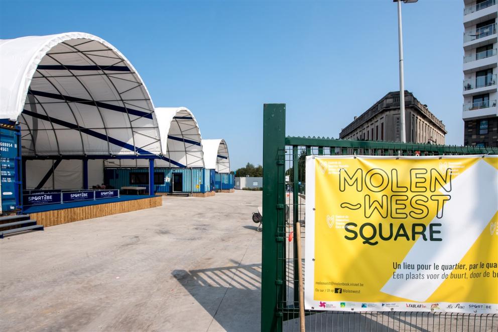 Des espaces couverts pour des activités sportives, des containers pour les animations ludiques et créatives d’associations du quartier à destination d’un public jeune, un fablab accessible aux riverains, une nouvelle antenne de quartier communale : telles sont les principales composantes de MolenWest - Square. Cette nouvelle occupation temporaire de 2.800 m2, initiée par la Société d’Aménagement Urbain (SAU) et la commune de Molenbeek, a été inaugurée ce mercredi 16 septembre en début de soirée par les autorités communales et le directeur de la SAU, Gilles Delforge.