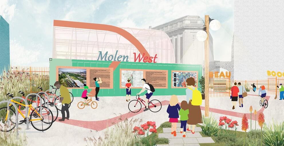 Pour rappel, le projet MolenWest prévoit la création d’espaces pour des activités sportives, des containers aménagés pour les animations ludiques et créatives d’associations du quartier à destination d’un public jeune, un fablab accessible aux riverains. Cette nouvelle occupation temporaire, initiée par la SAU et la commune de Molenbeek, prendra place sur un site dont la Région est propriétaire, en bordure de la friche ferroviaire qui appartient à la SNCB et à Infrabel.