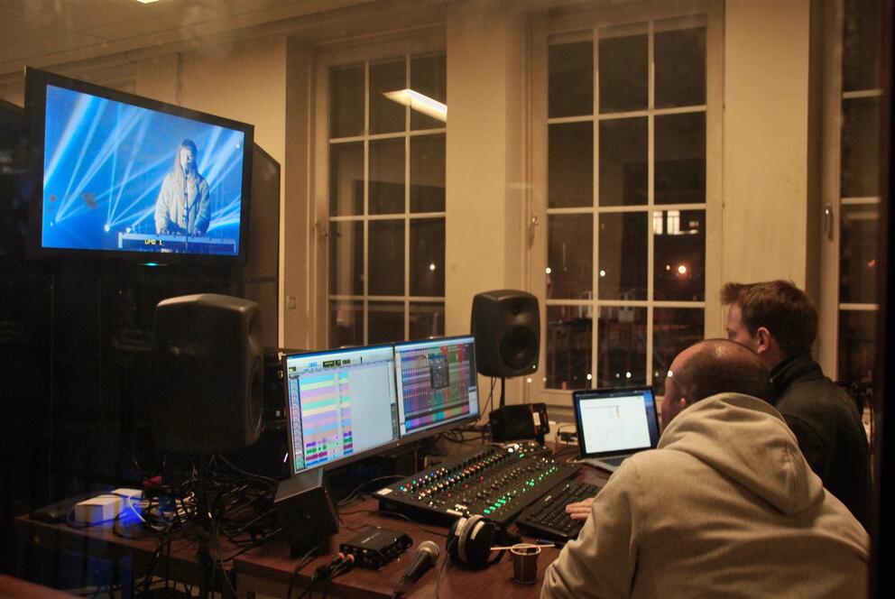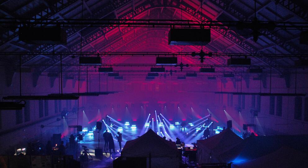 Le jeudi 12 mars en soirée avaient lieu les dernières de ces six captations, avec Loïc Nottet et Suarez à l’affiche. Dès la fin de l’après-midi, dans le bâtiment M, l’ancien manège de la gendarmerie montée, tout s’enchaîne à un rythme soutenu : maquillage, interviews, réglages techniques, mise en place, répétitions… Le show doit être bien rôdé avant l’arrivée des quelques dizaines de fans privilégiés sélectionnés par la RTBF. Alors que la première captation n’est prévue qu’à 22h30, les plus impatients admirateurs de Loïc Nottet se présentent déjà à l’entrée vers 20h. Les derniers réglages effectués, le public est finalement invité à entrer dans le majestueux bâtiment aux alentours de 23 heures. Les jeux de lumière confèrent à l’ancien manège une atmosphère féérique et soulignent son architecture singulière. L’énergie de « On Fire », le premier titre interprété par le jeune carolo, donne le ton pour le reste de la soirée… La salle est visiblement sous le charme.