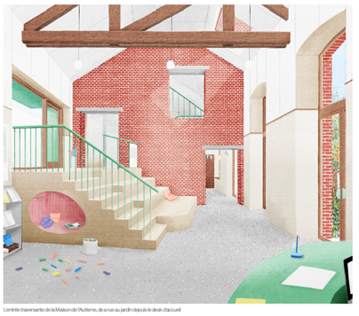 La Maison de l’Autisme se veut un véritable lieu de vie et de rencontres, ouvert aux associations, aux professionnels et aux usagers. Elle offrira des espaces partagés favorisant les échanges, les activités et le développement d’initiatives.