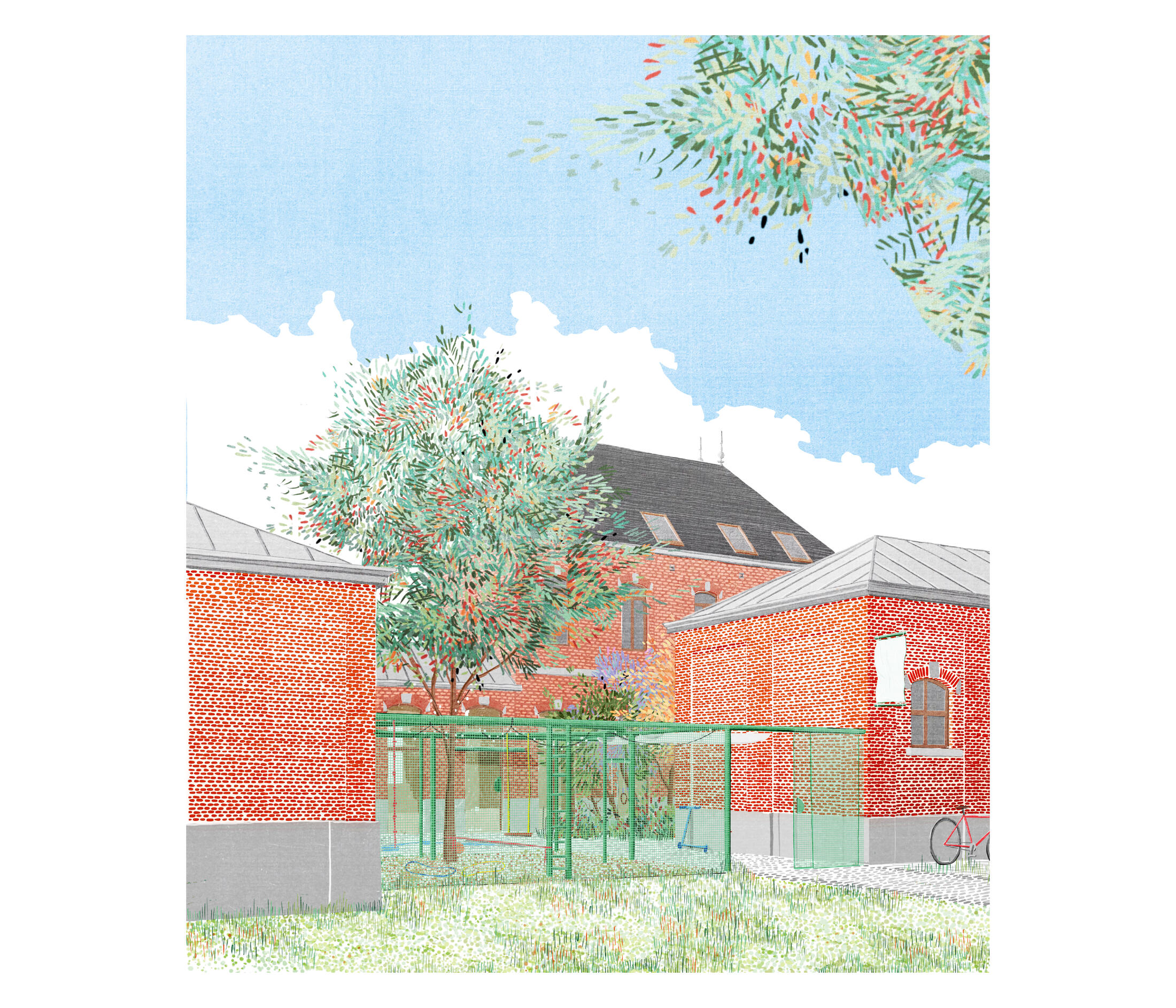 Organisée autour d’une cour-jardin centrale, la Maison disposera également d’un espace extérieur propre, favorisant à la fois l’isolement nécessaire à certains usages et l’ouverture vers le quartier.