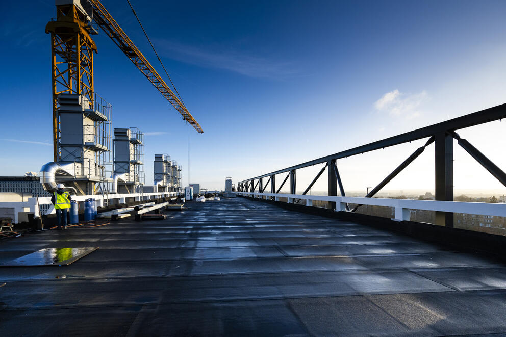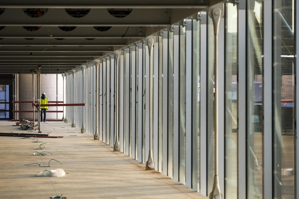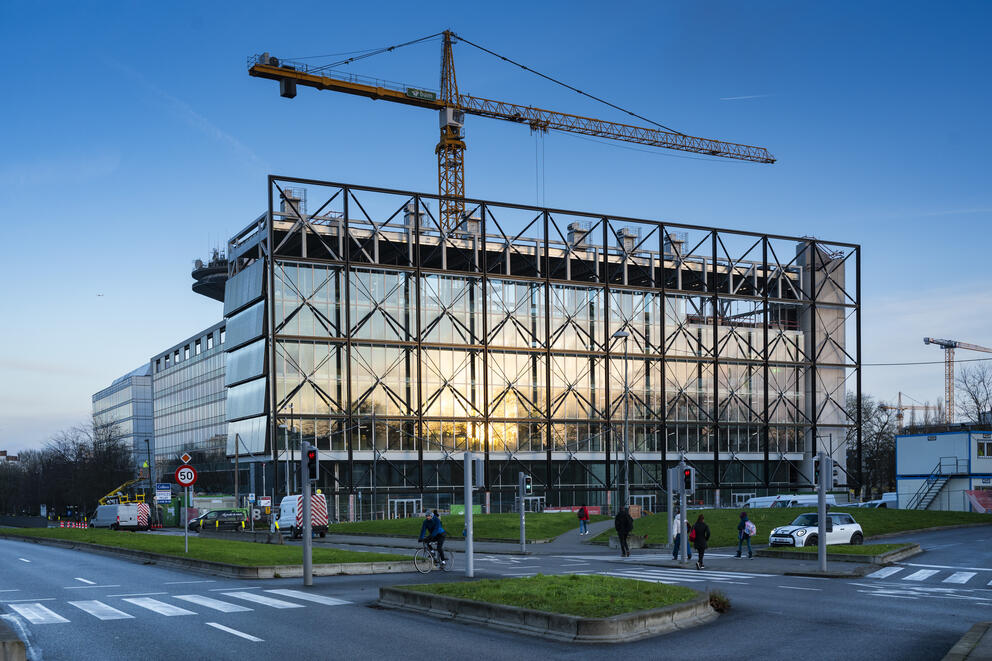 En 2024, le gros œuvre est achevé. La mise en charge du bâtiment marque le terme d'une étape cruciale : les structures temporaires disparaissent, laissant place à l'architecture audacieuse du bâtiment. Le marché pour l’exploitation du centre d’entreprise est lancé afin d’y créer un écosystème « Media » au rez-de-chaussée et au premier étage. En outre, plusieurs étages de FRAME sont désormais disponibles à la location pour des entreprises du secteur des médias et de la communication. BX1, de son côté, occupera deux étages, confirmant ainsi son ancrage au sein de ce nouvel écosystème innovant. Son ouverture est prévue pour l’été 2025 !