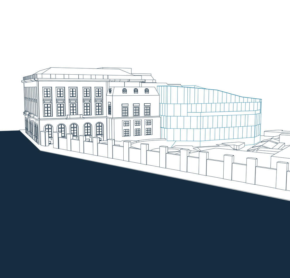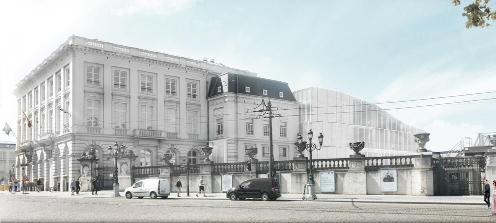 Cette nouvelle institution culturelle prendra ses quartiers sur une parcelle qui appartient à la SAU, où se trouvait un édifice désaffecté de très longue date et sans intérêt patrimonial. Situé dans un périmètre historique et culturel très dense, voisin du BIP-Maison de la Région (vitrine de la Région de Bruxelles-Capitale), du Musée des Instruments de Musique, du Palais des Beaux-Arts et du Palais Royal, sa construction a fait l’objet d’une étroite concertation avec la Commission royale des Monuments et sites. On y pénétrera via l’entrée de la « Cour des Lions », 6 rue Royale.