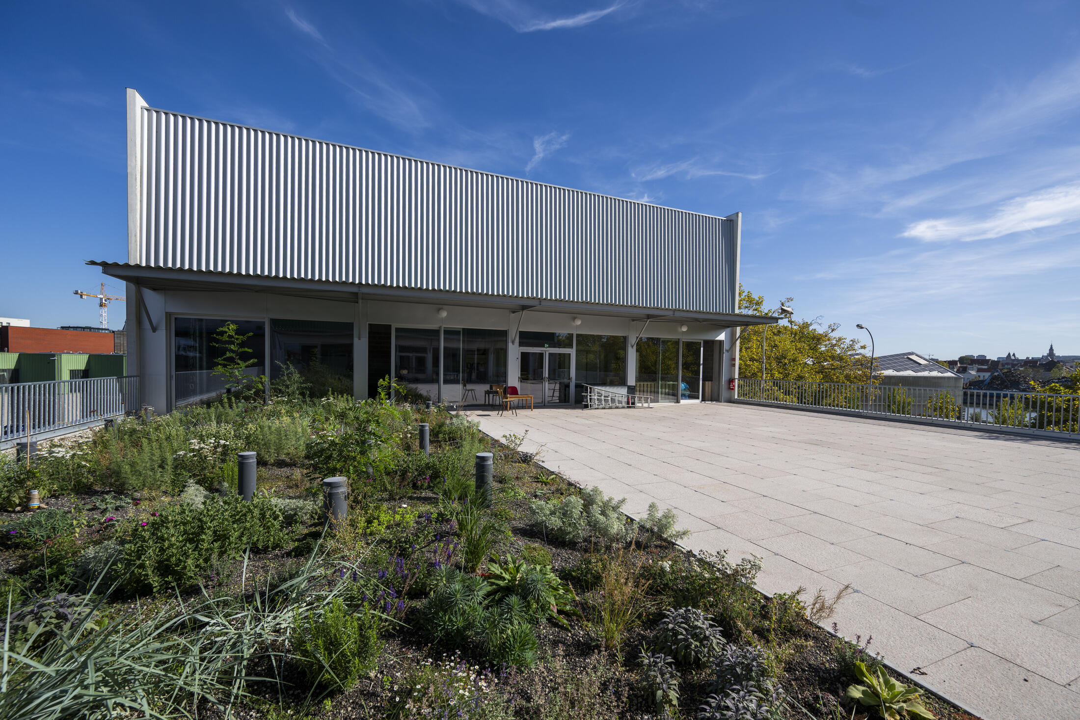 L’architecture met l’accent sur la durabilité et l’économie circulaire (matériaux de réemploi pour les sanitaires, carrelages et maçonnerie en terre crue). Le bâtiment, réfléchi d’emblée pour être polyvalent et évolutif, permettra de s’adapter en fonction des besoins.