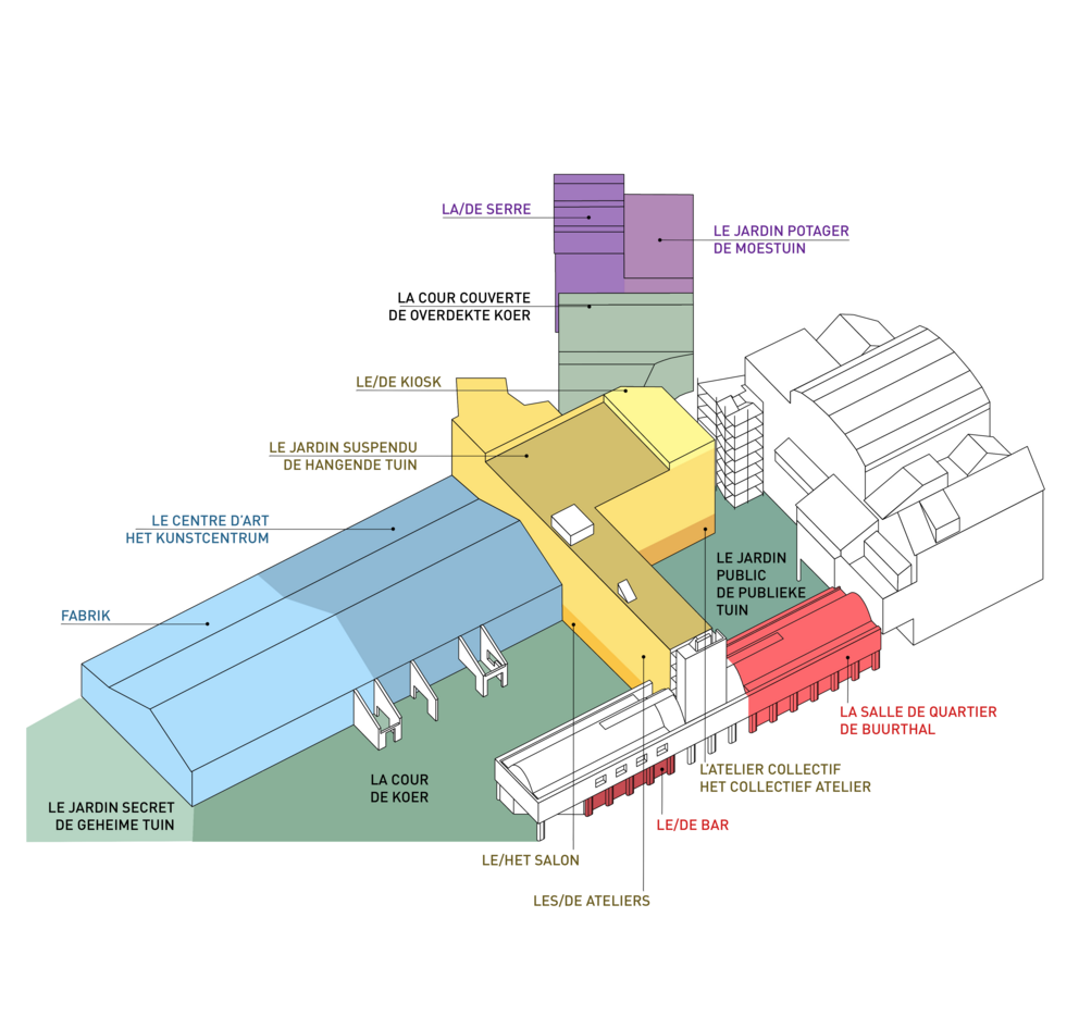 D’ici 2028, les bâtiments seront redéployés en un nouveau « hub » productif de type culturel, artistique et créatif. L’objectif principal est de favoriser l’émergence dans ce quartier d’un pôle dédié à la créativité (halle culturelle, ateliers, entreprises…) regroupant une série d’acteurs des secteurs culturels et artistiques, actifs sur le territoire bruxellois.